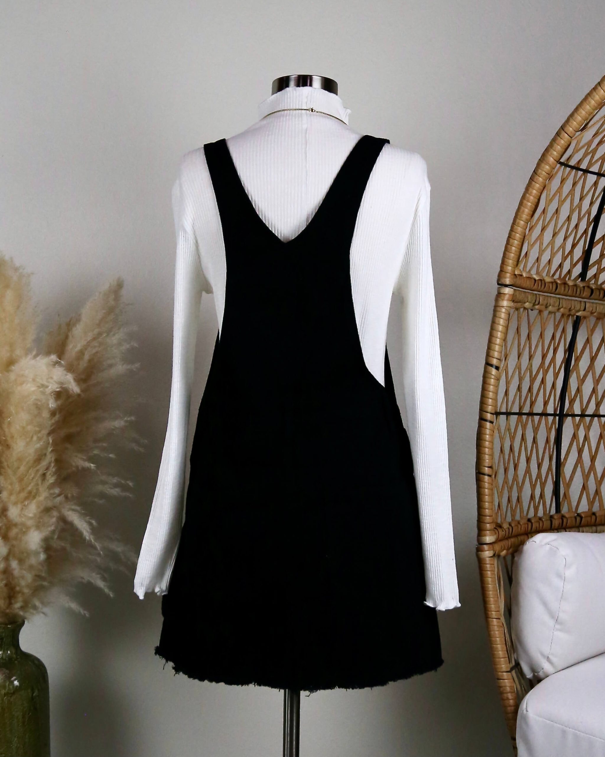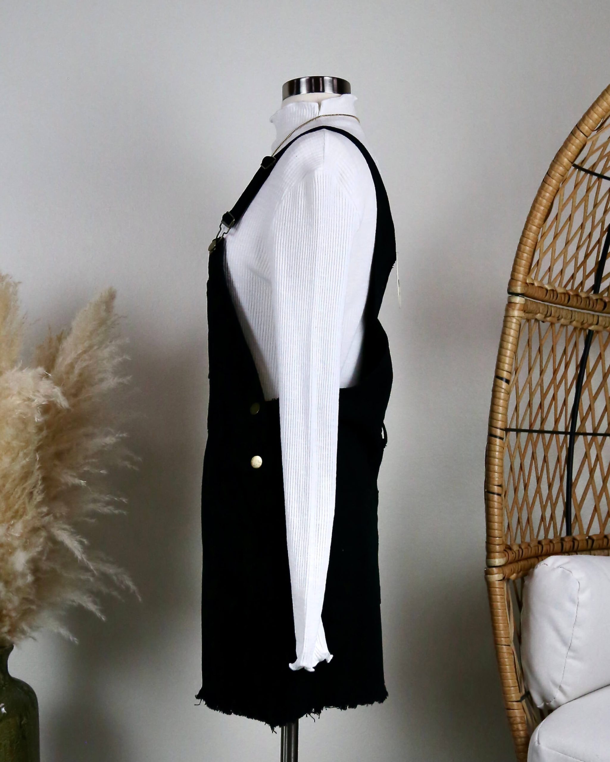 Black Denim Bib Overall Dress