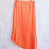 Silky-soft fabric makes you feel like you’re barely wearing anything at all in this asymmetrical skirt detailed with a thigh-high slit.
