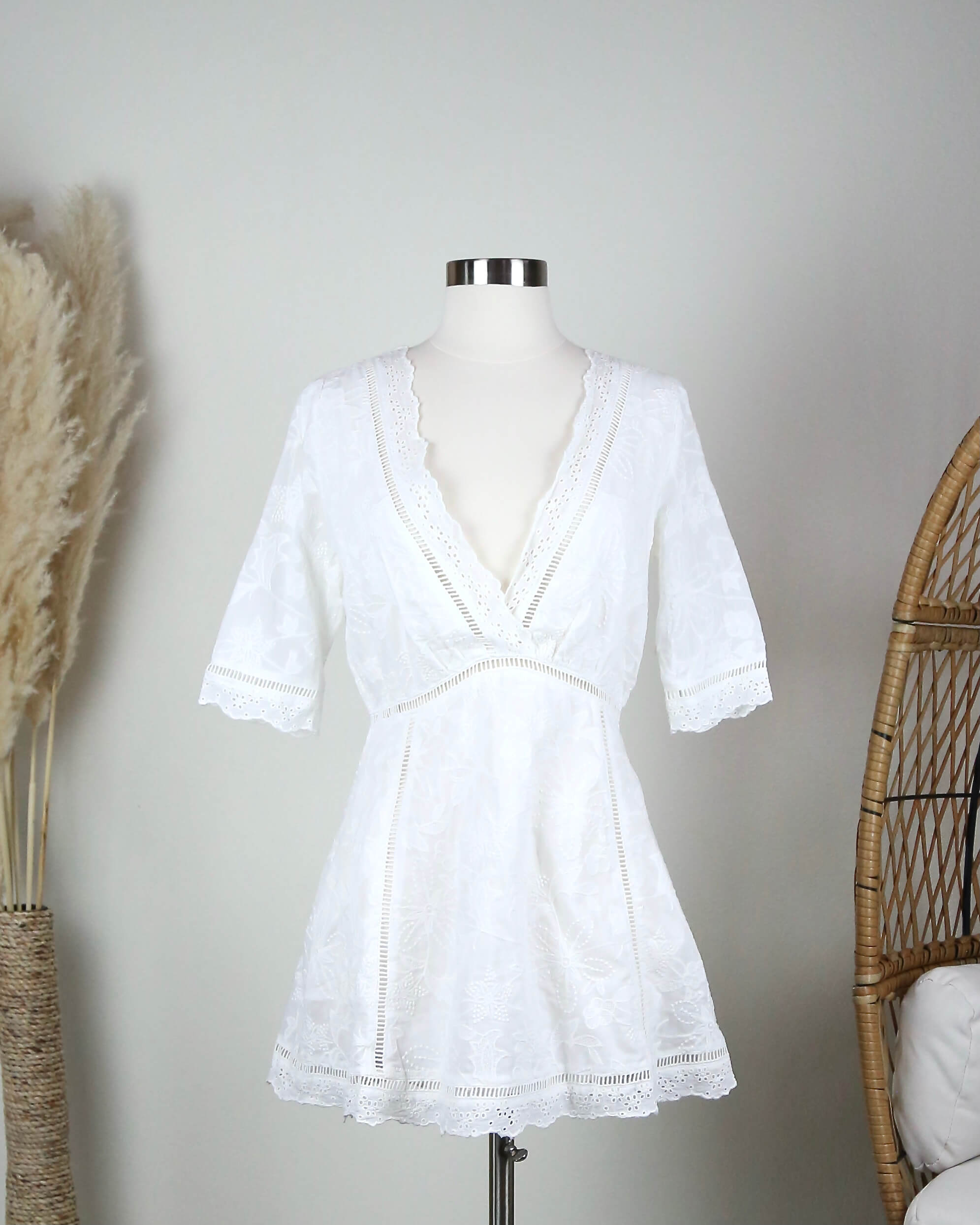 Wooldress Off Duty Plunging Festival Women’s Dress in White