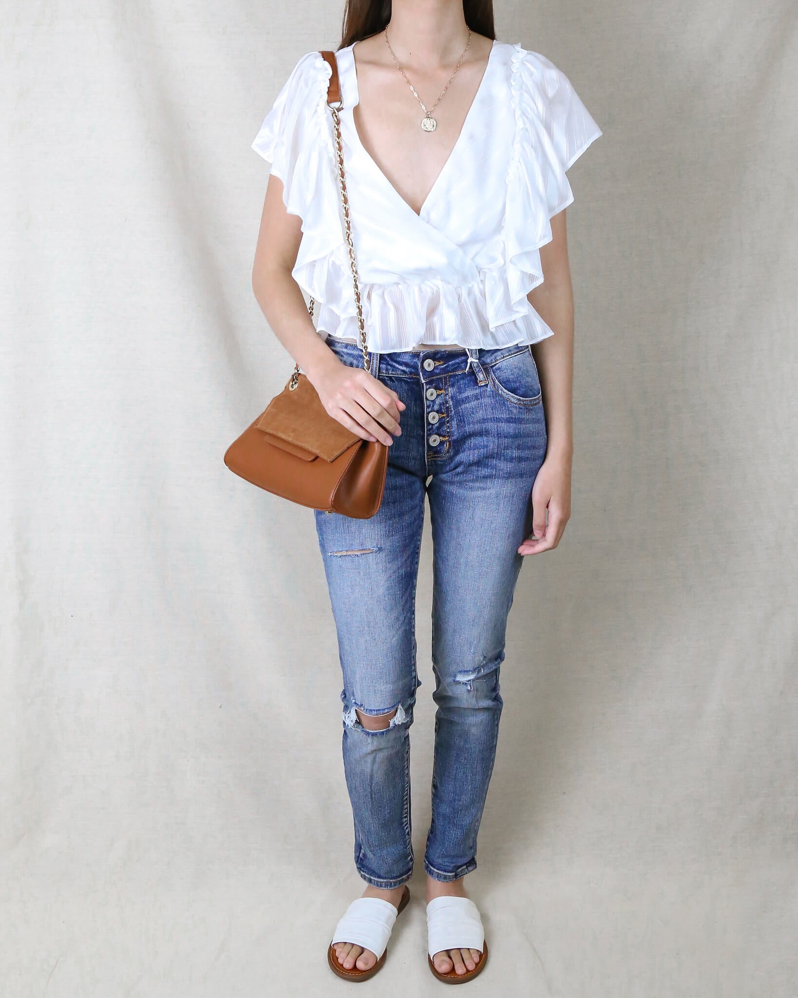 These Wooldress distressed medium wash faded high rise skinny jeans are a closet necessity! They’re easy to style, easy to wear, and super cute. Wear this with your favorite crop top and sneakers for a cute everyday look!