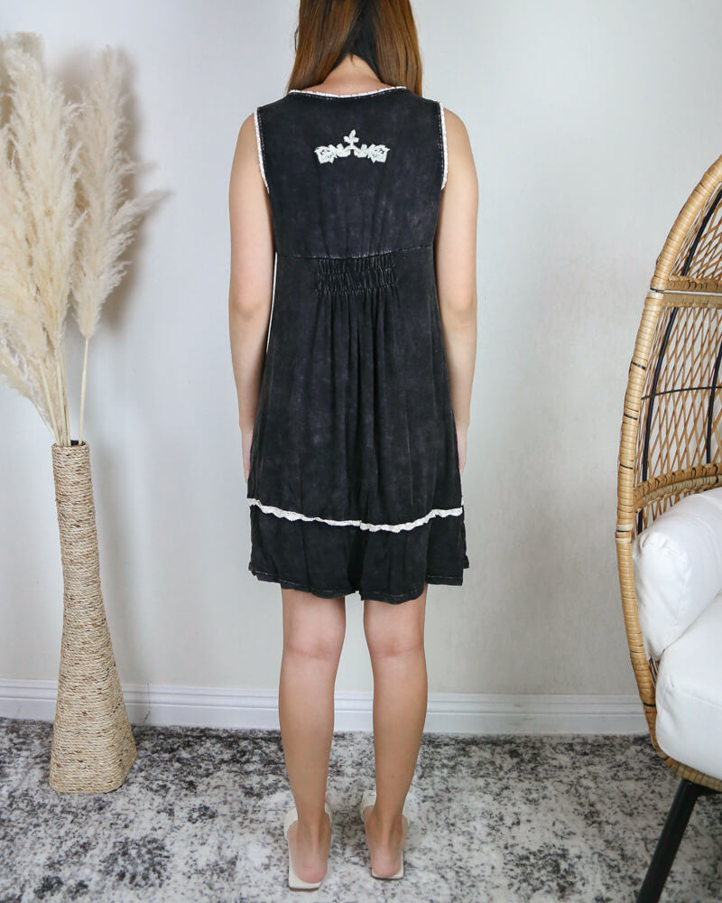 Wooldress – Acid Wash Floral Embroidery Dress – Vintage Black