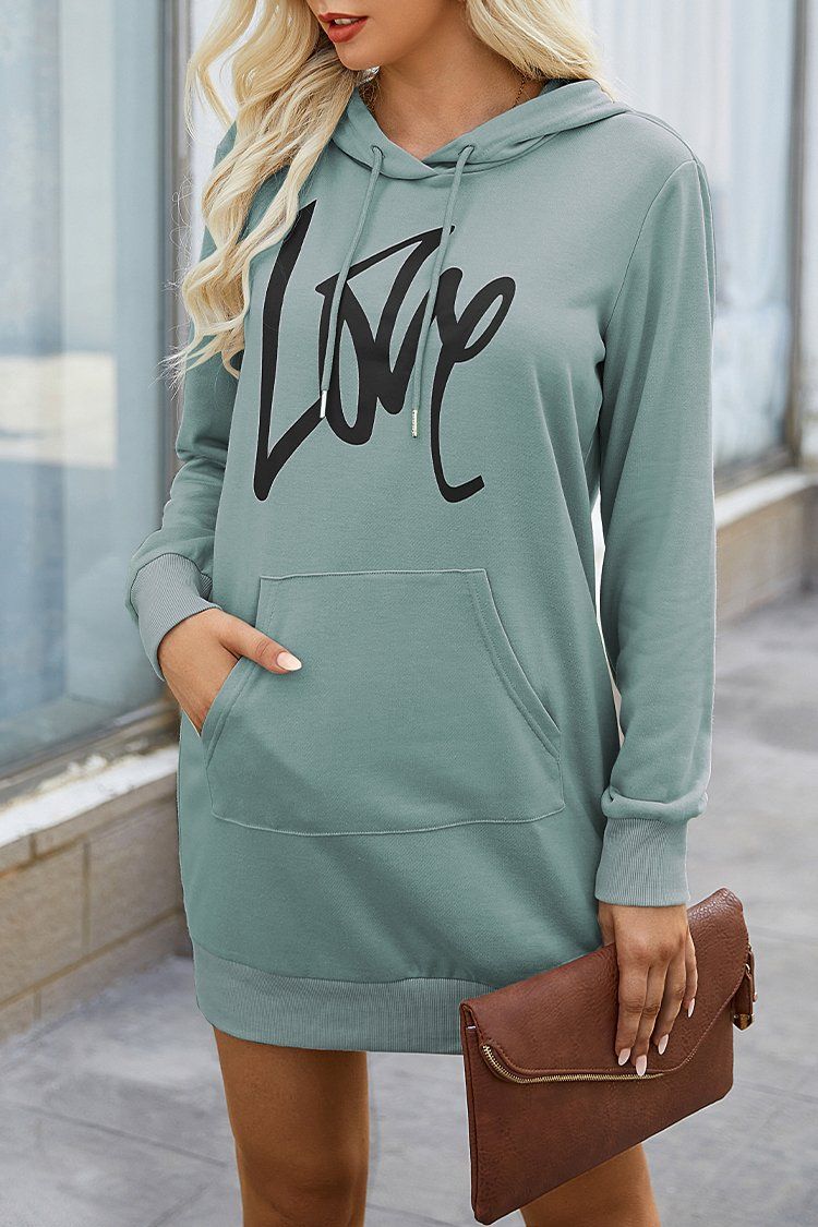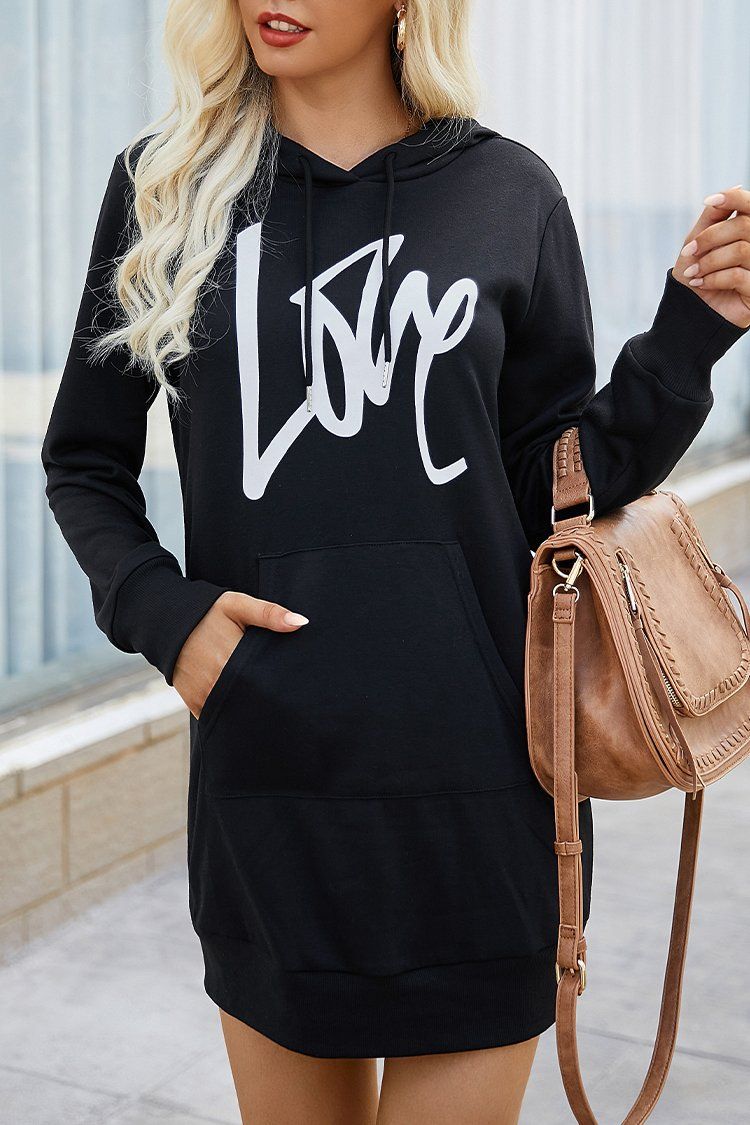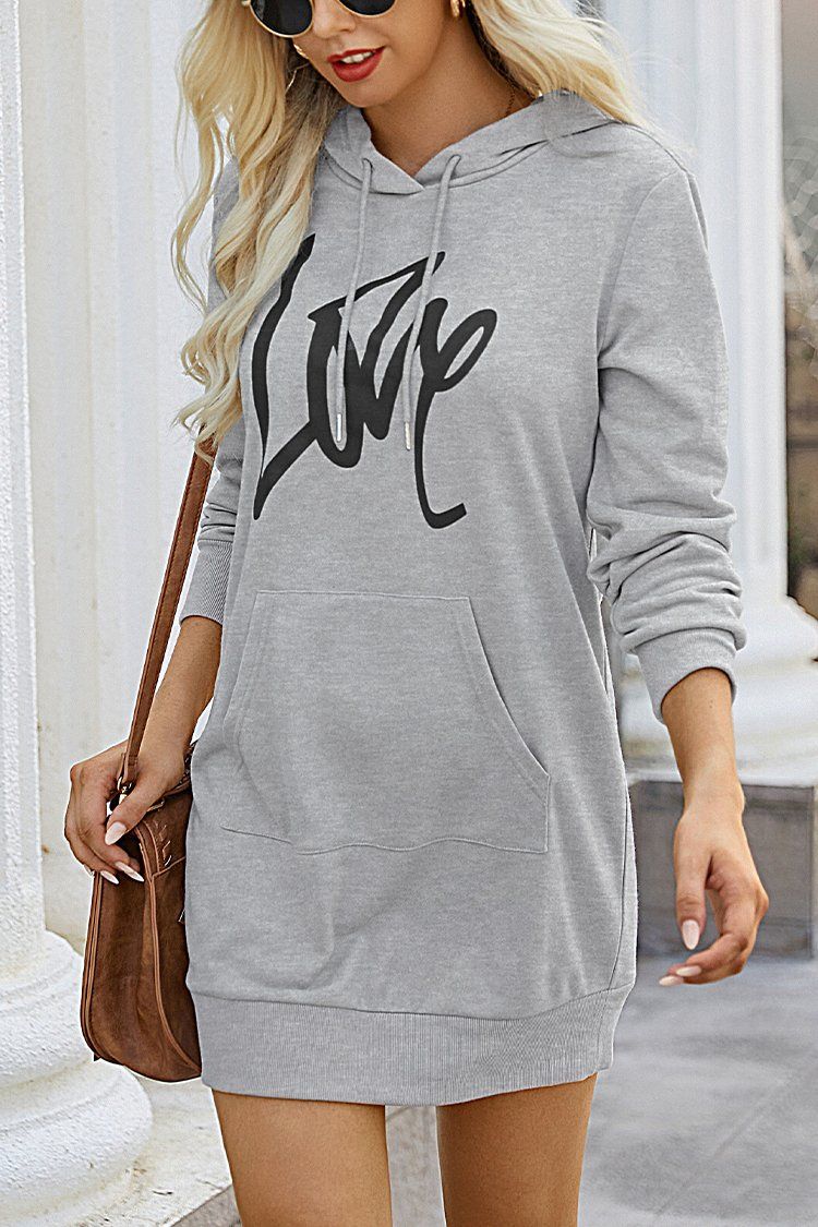 - A MUST-HAVE ITEM FOR LAZY PEOPLE!This long sleeve print tunic sweatshirt dress is fashion and casual with a front print and drawstring design.Hooded design can cover wide shoulders and back,looking thin and age-reducing.