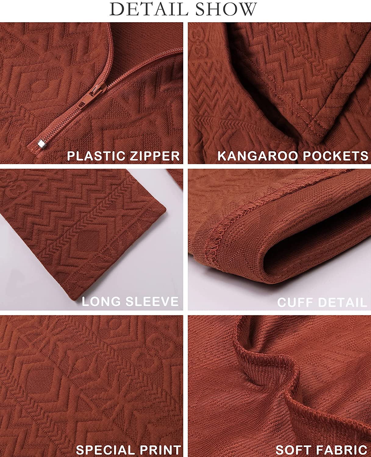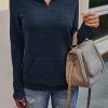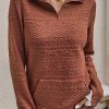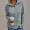 Quilted Pattern Quarter Zip Loose Sweatshirt with Pocket quantity