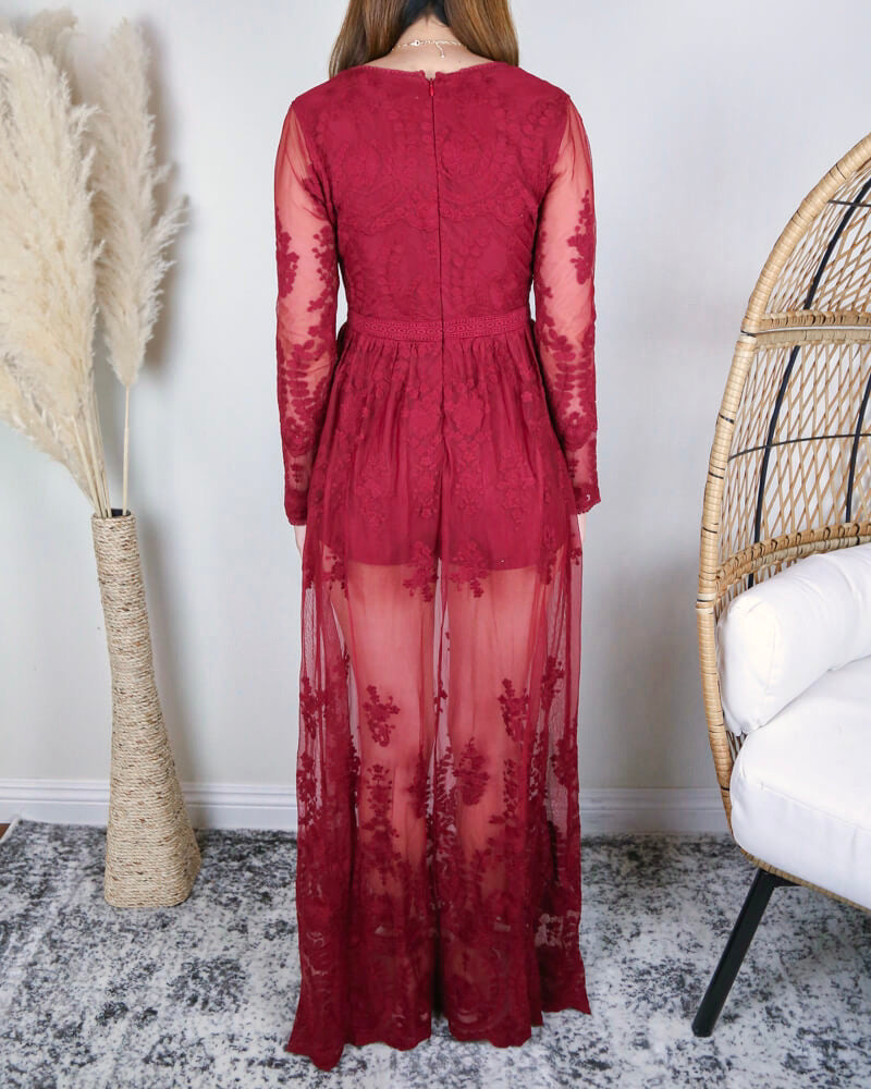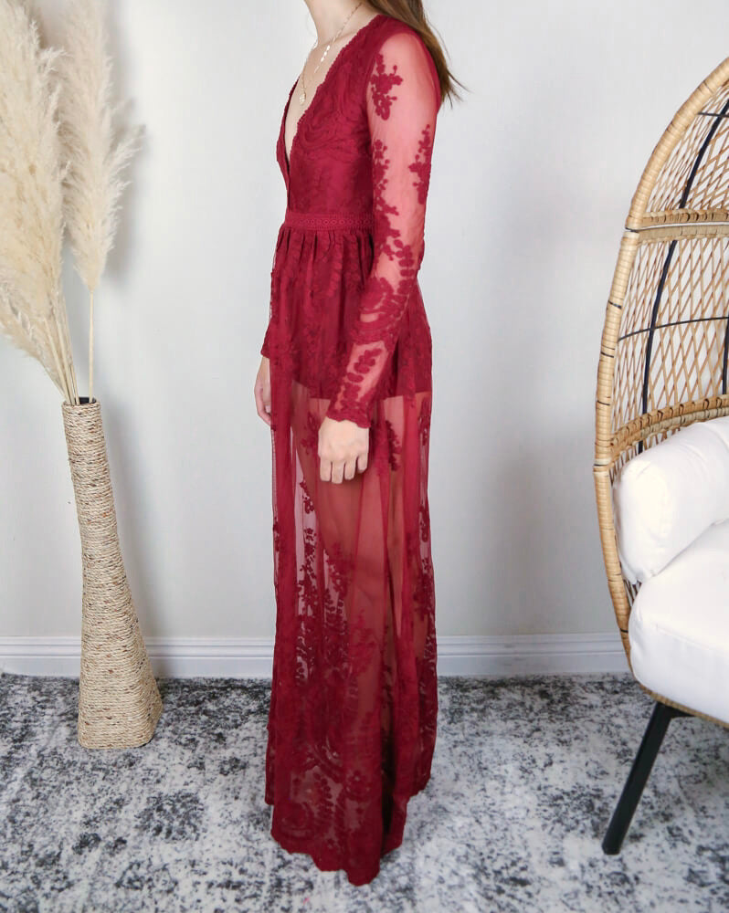 Wooldress Embroidered Maxi Dress in Deep Red quantity