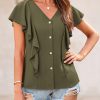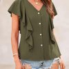 Design: A flattering V-neck design with ruffled sleeves