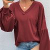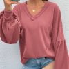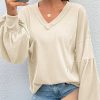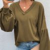 - FEATURES – Tops For Women / Womens Long Sleeve Tops / Blouses For Women / Soft And Lightweight Material / Lantern Sleeves With Patchwork Design / Tiered Long Sleeve / Feminine V Neckline / Soft Rib Knit Cuffs / Classy Solid Color / Front Side Pocket / Stylish Two Side Slit / Loose Fit / Perfect Tailored Cut /Relaxed / Fashion / Cute / Basic Casual Style / For Spring, Fall, Autumn, Winter / Size: S, M, L, Xl