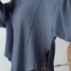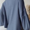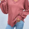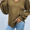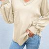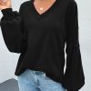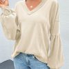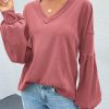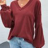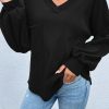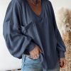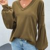 V Neck Tunic Loose Fit Side Slit Ribbed Knit Oversized Blouses