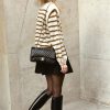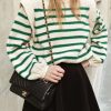 Long Lantern Sleeve Striped Ribbed Knit Pullover Top